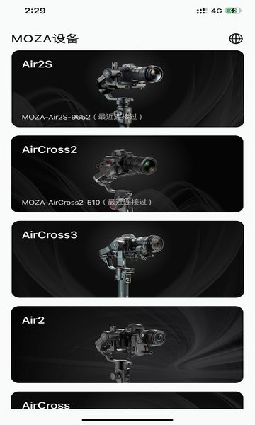 MOZA Master安卓版是可以帮助用户随时连接云台进行控制的云台控制软件,让用户在手机之中可以快速的连接云台,软件支持非常多的云台型号,让用户控制云台更加方便。