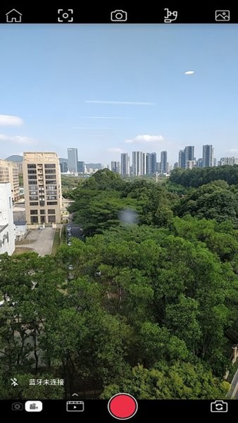 app安装启动后,只需首次稳定器开机绑定蓝牙,此后每次app开启、稳定器开机后就会自动连接;屏显内容会跟随手机的横屏、竖屏状态自适应。横屏下,左侧安置拍摄/录像切换、拍摄效果(静态、运动、轨迹等多种延时摄影、定时2s/5s/10s单拍,以及180°/320°/九宫格式全景拍照)、中间和左下角分别是拍摄键和镜头翻转按钮。