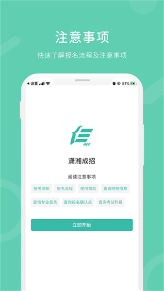 潇湘成招软件为湖南省成人高校招生考试考生报名、信息查询提供便利服务。提高了准考证打印、成绩查询、成绩复核、计划查询、志愿填报等操作提供的便利的服务。