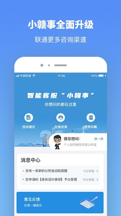 通过智能客服“小赣事”,提供智能问答互动服务,并将江西12345政务服务热线统一受理、转办、督办平台接入“赣服通”,营造有温度的人机交互式办事体验;