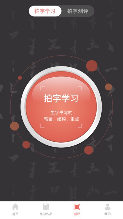 单击拍字看书写结果选项,立即查看自己书写的结果与建议