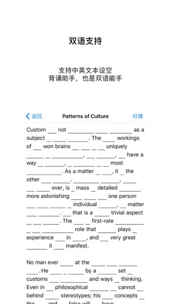 高效背诵:文本自动设空,用填空的方式调动记忆。