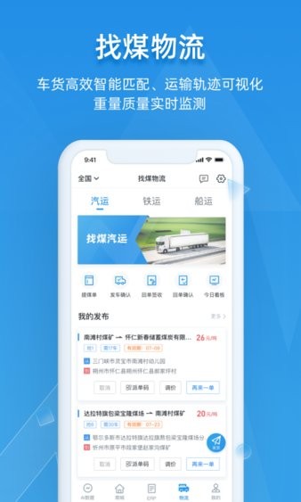 找煤云煤炭智能运销网app安卓最新版能够在手机上查看附近的煤炭企业,支持查看最新的行情走势,这里有最新的煤炭供货信息,轻松找煤,还能进行销售、采购和库存的综合管理,可以查询库存、收付款的统计报表。