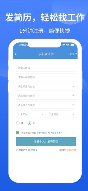 求职者可以免费发布个人简历,展示自己的专业技能、工作经验和求职意向。