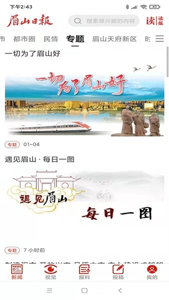 《眉山日报》新闻客户端是眉山日报推出的立足于眉山党政资讯、社会热点和民生服务的移动互联网产品。其内容涉及新闻、读报、论坛、生活资讯、本地服务等,体现了“个性化、本地化、社交化、数字化”的要求,是一个跨行业、跨媒体的新闻平台。