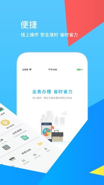 业务办理:公积金提取、还款、异地转移接续、单位汇缴、中心监管等业务可在手机上一键办理。