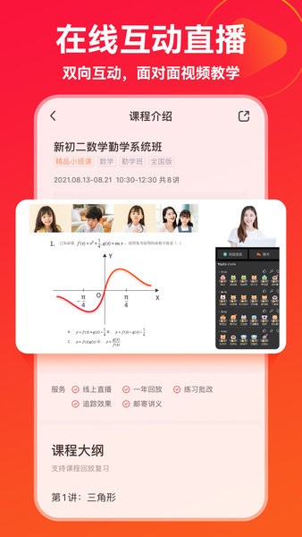 6.双师教辅,讲师教学,每节课入门考试,针对难点考点剖析精讲,连麦互动,随堂检测;