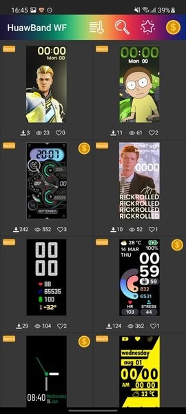 华为手环第三方表盘app之中拥有丰富的华为手环的表盘可以随意下载,许多的精美的表盘让用户的华为手环更加的个性化,帮助用户随时找到自己喜欢的表盘类型并下载。