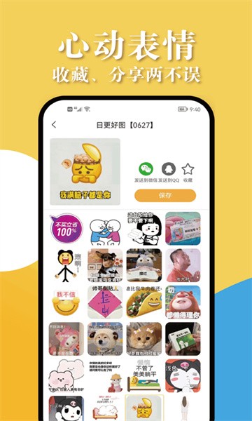 1、一键收藏自己喜欢的表情包,都可以随时去使用,或者保存到手机直接使用;
