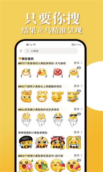 3、强大的搜索和推荐,方便用户随时去搜索,快速找到你想要的表情;