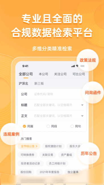 -- 合规数据库:收录将近6000部资本市场相关法规、A股上市公司历年公告并汇总监管机构发布的违规案例、问询函件,支持通过关键词+多筛选条件快速定位。