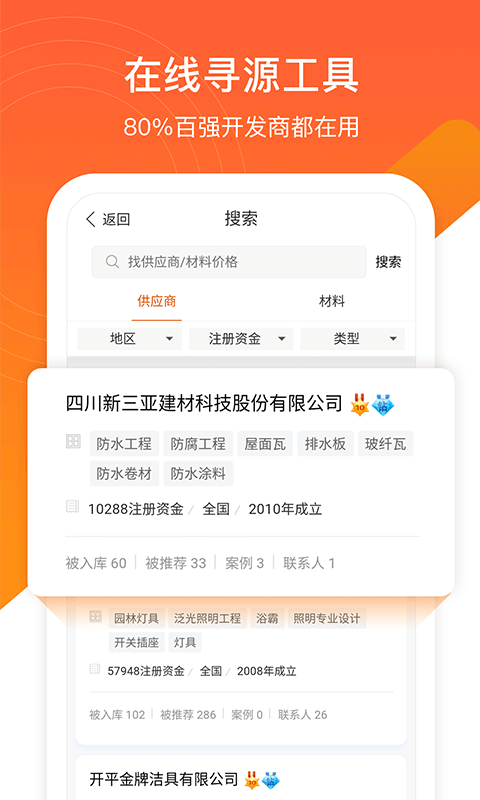-- 覆盖全国涵盖工程、材设、服务的精品供应商资源库,供应商招募不再有瓶颈