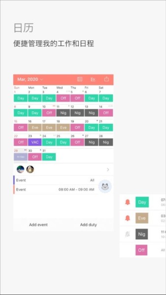 myduty手机版即我的工作app,是一款主要面向护理工作人员打造的日程工作安排规划工具,功能实用,操作简单,可以有效提高效率,多人团队协作,合理安排工作与休息时间,日程信息内容一目了然,日历显示,轻松查看,高效管理,即时共享,让时间尽在掌握!
