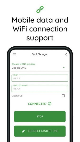 dns changer免费版(dns转换器)是好用的dns更改器工具,界面十分简单,功能强大,可以帮助用户优化dns服务器,自由修改设置dns,无需root操作,让你快速访问网络,支持无线网络和移动数据,使用轻松易上手,方便又快捷,给人不错的体验!