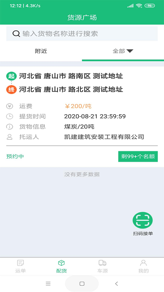 依据货物的运输需求在线进行货源信息的发布,从而解决货物的运输需求