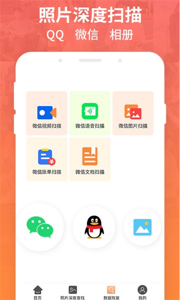 强力数据恢复应用深入安卓系统底层,通过深度扫描技术为用户迅速扫描丢失或删除的数据。现已支持微信照片恢复、微信文件恢复、手机照片恢复、手机视频恢复、微信消息彻底清除、消息彻底清除、图片彻底删除,免Root恢复等。