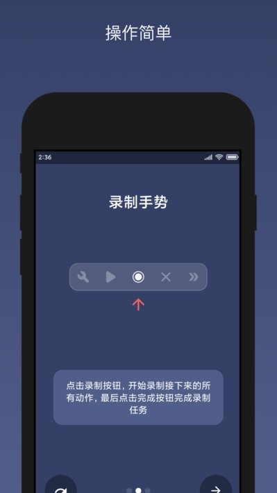 不需要ROOT权限,并可用于全局应用程序,录制手势操作后可直接通过悬浮按钮播放执行。