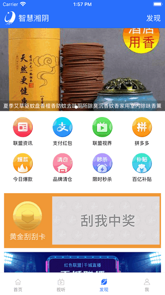 “智慧湘阴”,是湘阴融媒体中心整合本地广播、电视、直播节目、当地政府的政务资讯、医疗教育、市政交通、旅游美食、文化票务等综合功能的APP。