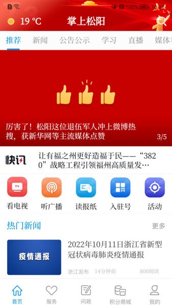 掌上松阳移动客户端是可以为用户带来更多的地方政务信息和生活服务信息的新闻资讯客户端,让用户在软件之中得到的不只是时政新闻,软件之中还有许多的电视频道可以随时观看。