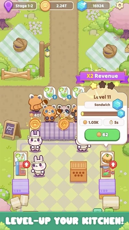 随着游戏的进行,您可以解锁新的阶段和场景,每个阶段都有新的食材和食谱可供您探索和解锁。通过不断升级和扩展咖啡馆,您可以提供更多种类的美食和吸引更多的顾客。