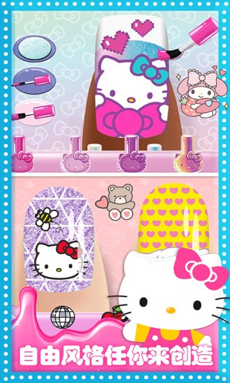 欢迎来到女生美甲装扮,各位小公主快来帮帮可爱的凯蒂猫打造超可爱美甲造型,成为优秀的美甲设计师的地位。通过挑战检验您的非凡技巧,或在“自由风格”中尽情释放创造力!