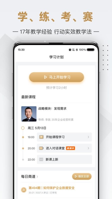 行动商学院是一款专为企业家打造的在线学习平台,涵盖企业管理的八大核心能力,包括战略、人才、资本等,帮助用户快速提升管理技能。软件提供丰富的课程内容,支持按部门职能解锁不同课程,满足个性化学习需求。亮点功能包括每日免费音频推送、强大的播放器设置(倍速和循环模式)、离线学习支持以及学习成果可视化。此外,还支持分享课程到微信好友或朋友圈,新用户可获得课程礼券。软件界面简洁易用,适合碎片化学习场景,尤其适用于企业家群体在出行、午休等空闲时间学习。总的来说,行动商学院是一个高效实用的学习工具,能够帮助用户系统提升企业管理能力,同时通过社群互动和主题学习增强学习效果。作为用户,我觉得这款软件非常适合现代人的快节奏生活,随时随地都能学到实用的知识,特别适合需要持续充电的企业管理者。