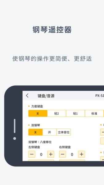 您能在APP上简单舒适地操作数据钢琴的各种设定。