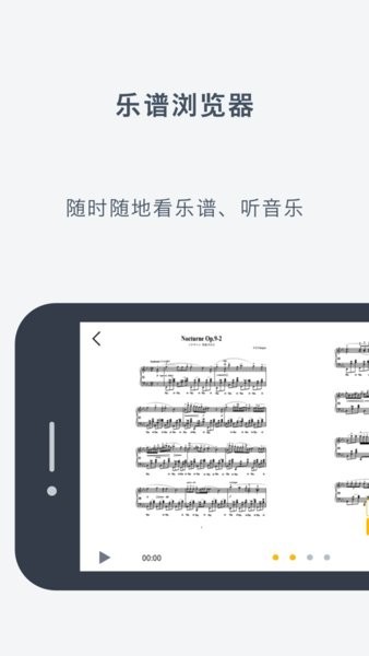 您能在智能手机/平板电脑上,用“乐谱+音”,看或听多彩的乐曲。