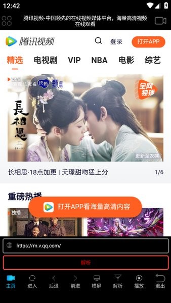 6.点击左上角的四个框框,选择一个视频网站,例如腾讯视频