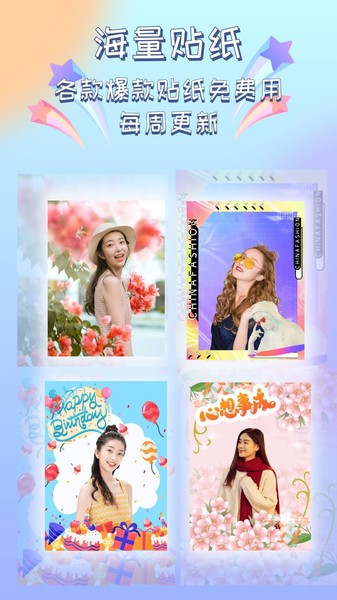 1、海量贴纸:各款爆款贴纸免费用,每周更新