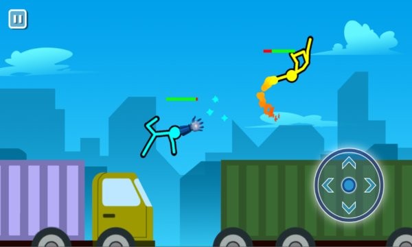 火柴人战役无广告正版是一款支持双人一起玩的火柴人小游戏;当然,也可以一个人玩。结合了物理元素,如果你物理很好的话应该会玩的很溜。双人游戏的时候,要注意和队友的搭配,不然会一起GG的。