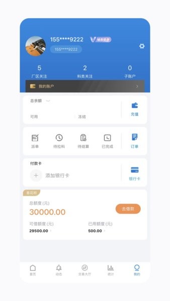 进入我的页面,查看总余额和订单信息