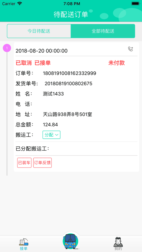 及时查看待配送订单,今日的配送任务及时清楚