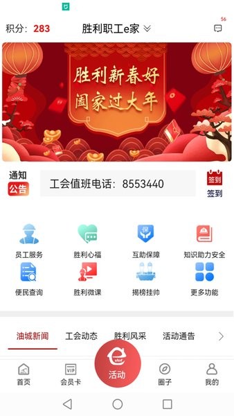 胜利职工e家最新版安卓系统为胜利油田职工提供了众多便利,注册成功以后,可以在手机上查看详细的工会动态和油城新闻,能在手机上进行医疗互助保障,可以在线学习技能以及安全知识,使用工会会员卡还可以享受机票、酒店的优惠服务,用积分还可以兑换各种好礼!