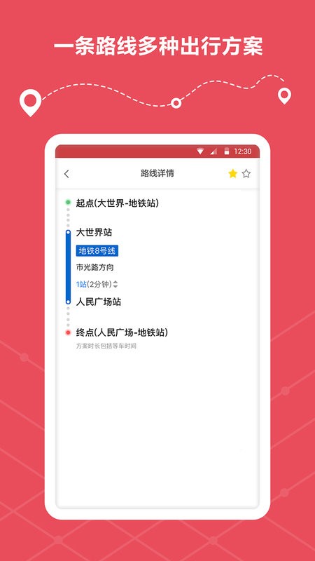 一款直观好用的地铁路线查询地铁app,基于百度地图的地图导航,地铁路线查询准确无忧。不仅囊括地铁路线查询、地图导航,甚至公交路线、换乘方案也能查。