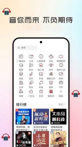--听小说、听音乐、听段子、听电台、听新闻、听儿歌、听故事等充分利用碎片时间,开车不再只收听电台,走路不再只收听歌曲,网络小说不只在手机上收看,一切的一切,让它成为你的手机随身听!