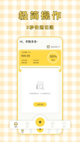 手账多多软件是UI非常精美的记账软件,充满治愈的软件界面让用户随时都可以轻松有趣的进行记账,多种记账功能可以在软件之中使用,帮助用户生成更多的记账清单。