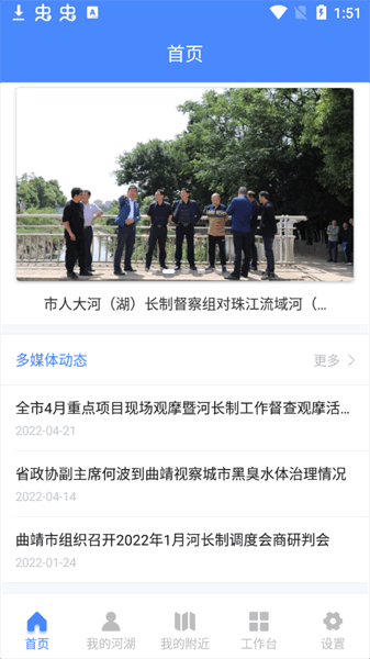 曲靖河长制提供便捷服务,平台拥有新闻通知,我的河湖,工作台,设置等等功能服务,支持巡河、问题处理、事件上报并提供河长联系方式,推进河长制工作开展。
