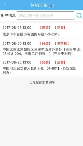 订单信息非常详细,具体的地址、出现的问题以及服务费用等;