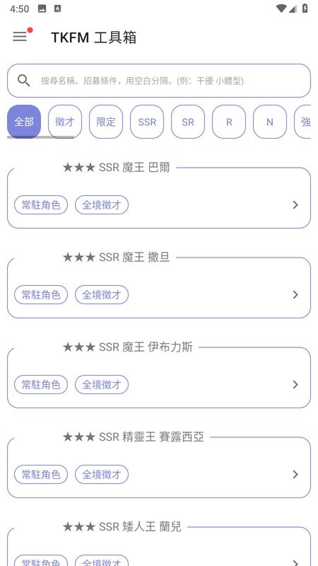 TKFM工具箱手机版是一个很实用的游戏辅助工具,功能挺多的,比如角色资讯、虚宝码、邀请码这些都能用。最让我觉得方便的是召唤模凝器,可以模拟抽卡活动,特别适合想测试抽卡概率的人。还有角色计算器和评价表生成器,对新手来说简直是福音,输入数据就能自动算出结果,省事多了。