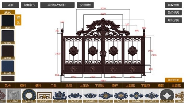 画你所想,助你签单!铝艺大门效果设计软件隆重上线啦!整合集成了业内常用的铝艺款式及色卡配件等!可以在软件中画出你想要的铝艺大门设计方案!!素材全部高清,软件使用便捷,渲染快!出图更快!!!