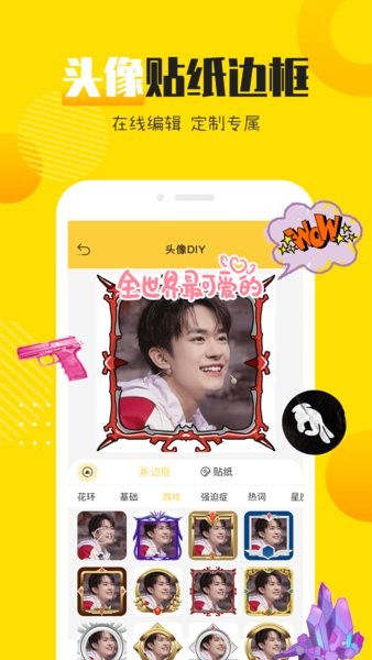 支持自定义头像边框和添加贴纸,diy定制专属个性头像。