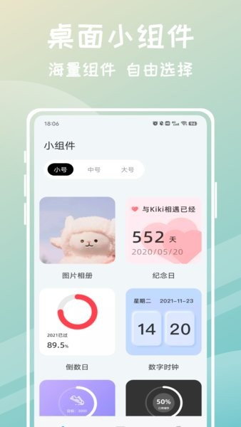 迷你组件手机版是一款专业的小组件美化软件,功能超级强大,支持各种风格的壁纸和小组件设置。里面有很多实用的功能,比如倒数日、纪念日提醒,还有各种时钟样式,甚至还能记录运动步数和显示天气信息。最让我觉得方便的是它可以自定义照片作为小组件背景,在疲惫的时候看看喜欢的照片真的能激励自己。