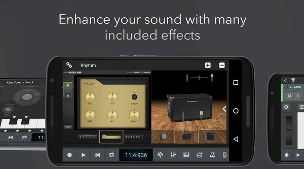 n-Track Studio(多轨录音软件)手机版中文免费版是款功能齐全专业的便携式音乐制作应用软件,它几乎可以录制无限数量的音频、MIDI 和鼓点音轨,并在播放过程中混合并添加效果,比如吉他、放大器、 VocalTune、混响等,另外它还有着专业音效与音频处理、一键分轨导出并提供最为强大的剪接与编修能力且程序容易使用,适合小型录音棚和音乐爱好者使用。