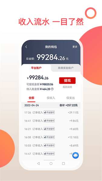 3、可以很好的满足不同手机用户的接单需要,每天提供的订单信息非常的丰富
