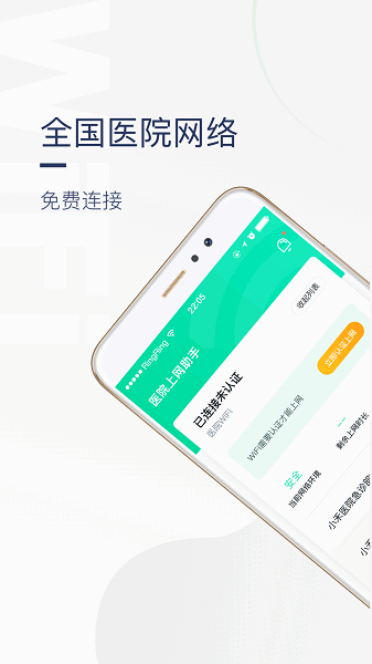 全国医院网络,免费连接;智能搜寻周边医院WiFi,一链连接快速上网!
