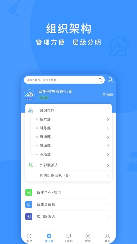3、平台提供搜索功能,支持用户直接输入名称搜索联系人,可以实时搜索;