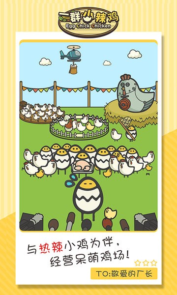 看看这群勤勤恳恳认真工作的小鸡们吧!小鸡中的战斗机~最自觉最呆萌的小鸡工厂就在这里!从今天起你就是这个鸡场的场主啦,掌管小鸡们的供、产、销一条龙!超稀有的小鸡品种会不会就在你的手中诞生?!