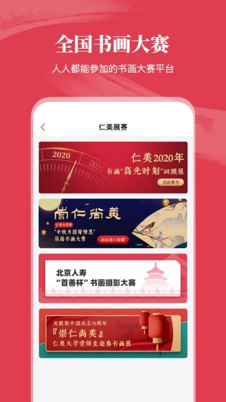 仁美大学堂app主要是为了让大家随时随地学习书画,传承中国文化。它的亮点很多,比如根据兴趣推荐课程、关注名师动态、参加展览比赛、欣赏书画作品等等。还有专属客服和各种福利活动,感觉挺贴心的。