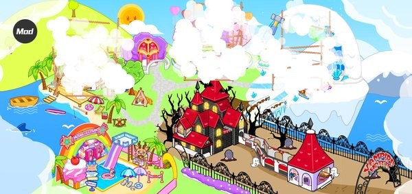 度假胜地(吸血鬼酒店大堂、豪华套房)、冰雪城堡、泳池派对、海滩和岛屿、美容沙龙